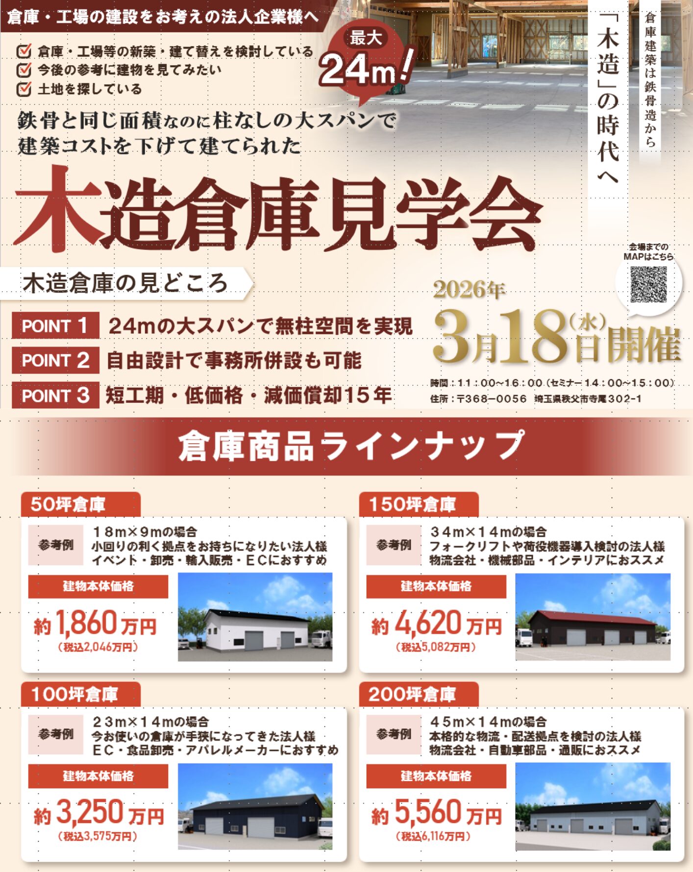 👷♂️無柱木造倉庫完成報告!🎊 皆様、こんにちは!この度、約60坪の無柱木造倉庫が完成いたしました! この倉庫は、最大スパン12mを実現した、柱のない大空間が特徴です。 従来の木...