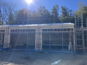 今はまだ骨組みの状態ですが、この頭上に広がるトラスの連続美は、完成して天井が貼られると見えなくなってしまいます。 しかし、この見えない「木の蓋」こそが、安価で・強く・広い空間を支える要(かなめ)なのです。